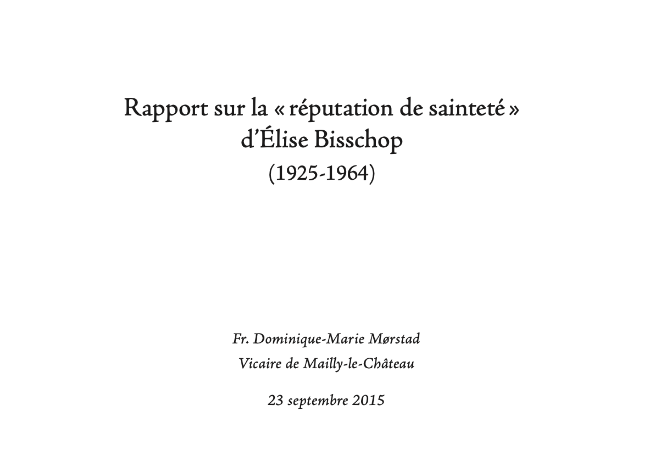 L'évêque demande un deuxième rapport, cette fois-ci sur “la réputation de sainteté d’Élise.”