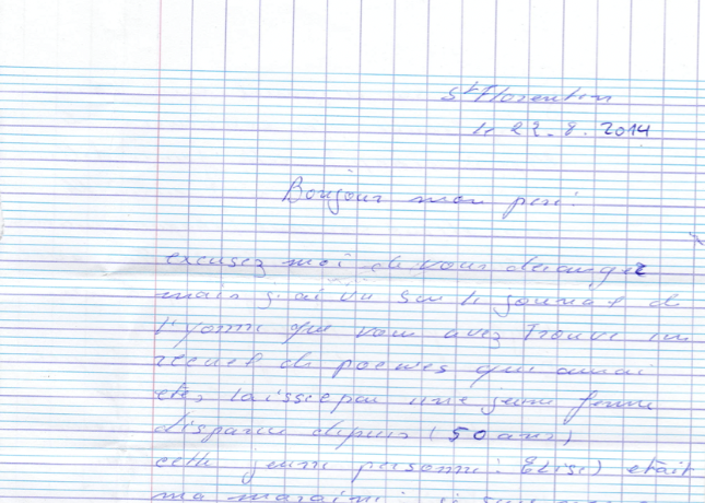 Trois semaines après, une filleule d‘Élise qui habite à Saint-Florentin contacte la paroisse par lettre. Elle avait été étonnée de lire l’article sur sa marraine.