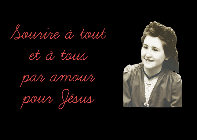 “Ma devise depuis l’âge de 13 ans (je pense) : sourire à tout et à tous, par amour pour Jésus.”